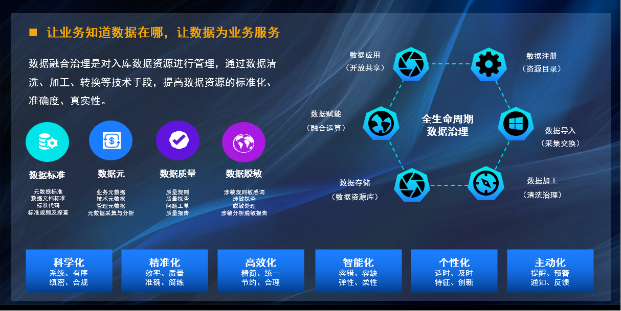 一、產(chǎn)品簡(jiǎn)介數(shù)據(jù)融合治理是對(duì)入庫數(shù)據(jù)資源進(jìn)行管理,通過數(shù)據(jù)清洗、加工、轉(zhuǎn)換等技術(shù)手段,提高數(shù)據(jù)資源的標(biāo)準(zhǔn)化、準(zhǔn)確度和真實(shí)性,貫穿于數(shù)據(jù)注冊(cè)、數(shù)據(jù)導(dǎo)入、數(shù)據(jù)加工、數(shù)據(jù)存儲(chǔ)、數(shù)據(jù)賦能、數(shù)據(jù)應(yīng)用的全生命周期數(shù)據(jù)治理,包含數(shù)據(jù)質(zhì)量系統(tǒng)和數(shù)據(jù)…